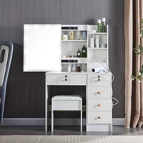 - 【With Charging Station】The vanity desk has 2 standard plug sockets and 2 USB ports. This allowed you connect your hair dryer, curling iron more convenient. It saves your time while applying makeup.
