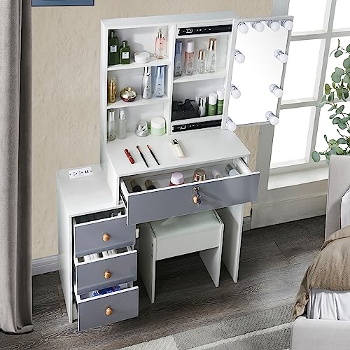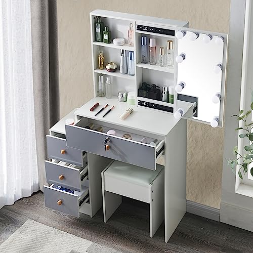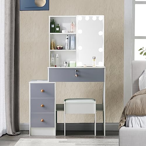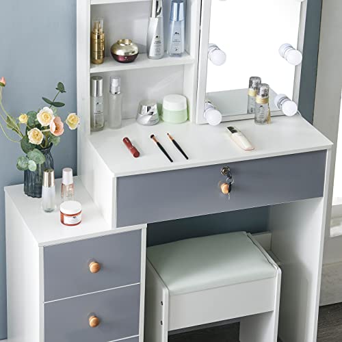 - Sturdy Material: The makeup vanity desk is made of high-quality MDF material, which is smooth and flat. This vanity table includes cushioned stool offers a comfortable makeup experience, perfect for home, work, hair salon and studio makeup. The best gift on special day!
