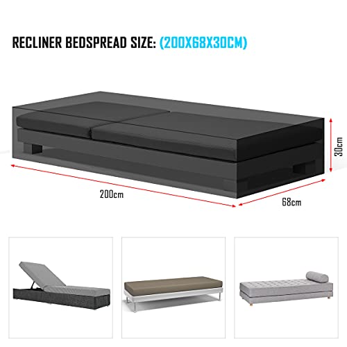 - ►【Perfect Size】200x68x30cm (LxWxH). This protective cover suitable for most sun loungers and patio sunbeds. Please check the dimensions of your sun lounger or sunbed before buying.