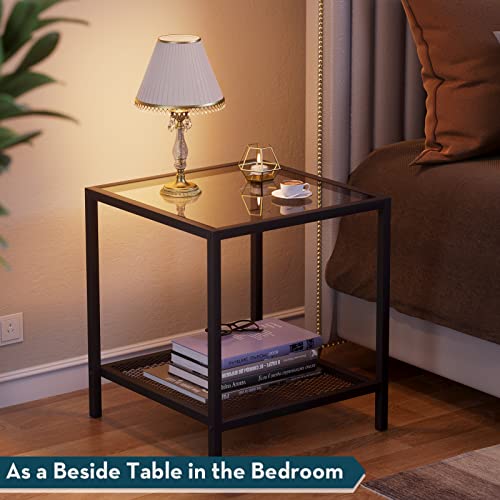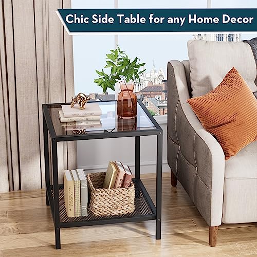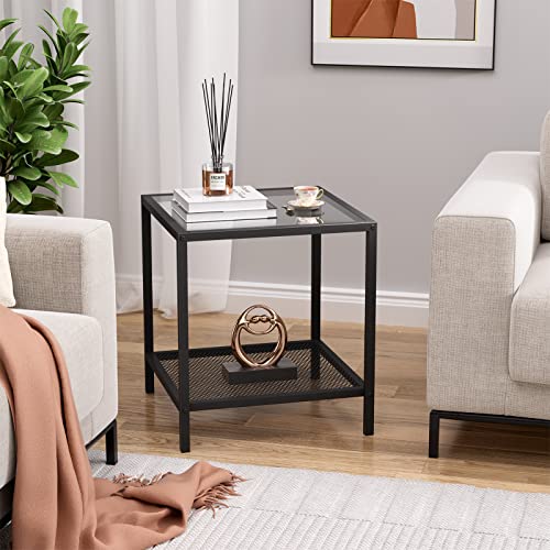 - STUNNING MINIMALISM With a decent size of 45 x 45 x 50 cm, take your home aesthetic to the next level with a modern end table that combines sleek black metal and a tempered glass top in one minimalist yet functional piece.