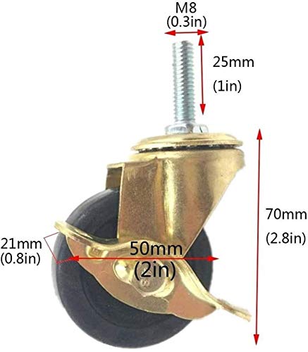 Home Home Office Furniture SBTXHJWCGLD 4pcs Furniture Casters 50mm Caster Wheels,Swivel Casters With Brake,Rubber With M8 Threaded Rod,for Home Furniture,Office Table Cabin