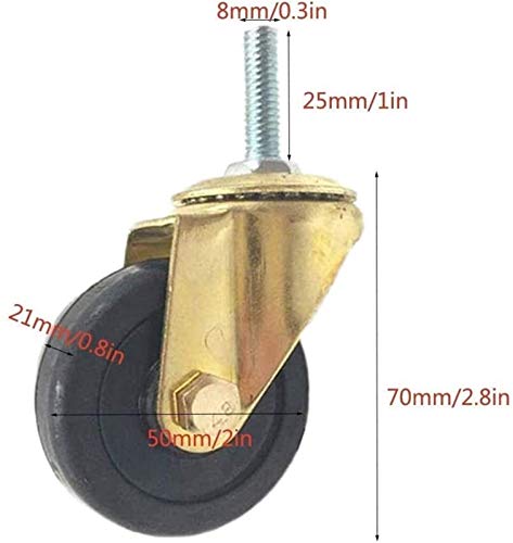 SBTXHJWCGLD 4pcs Furniture Casters 50mm Caster Wheels,Swivel Casters With Brake,Rubber With M8 Threaded Rod,for Home Furniture,Office Table Cabin