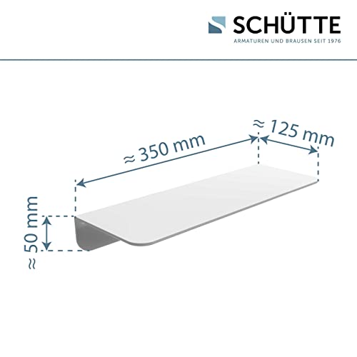 - Box contents: 1 x shower shelf (350 x 50 x 125 mm), 1 x tube of adhesive (made in Germany), 1 x adhesive pad as mounting aid, 2 x screws, 2 x dowels, 3 x cover caps