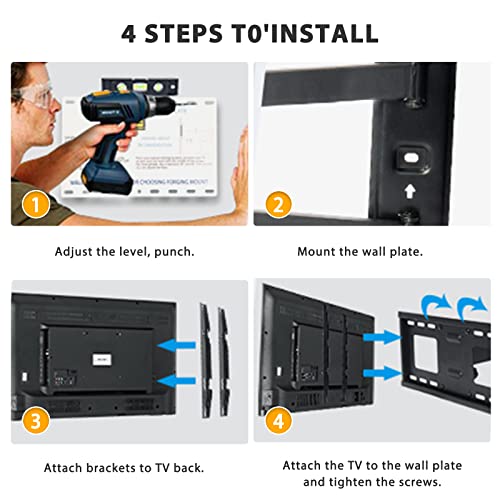 - Safe & Sturdy Mounting Structure - Heavy duty steel design, sturdy wall mount protect TV from falling and without bend. No worry about children pushing down the TV