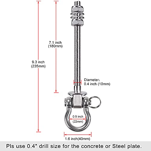 SELEWARE Permanent Antirust 304 Stainless Steel Heavy Duty Swing Hanger 800KG Capacity, 235mm x 8mm, Swing Hooks for Wood and Steel Beam Yoga Ham
