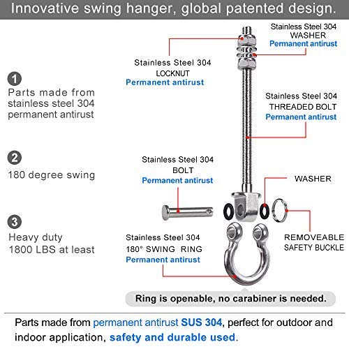 Home Garden Furniture SELEWARE Permanent Antirust 304 Stainless Steel Heavy Duty Swing Hanger 800KG Capacity, 235mm x 8mm, Swing Hooks for Wood and Steel Beam Yoga Ham