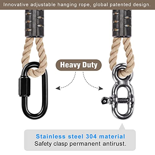 • MULTIFUNCTIONAL: Suspension rope fast & easy way to extend any swings, fit perfectly for spinner swing, outdoor hammock, aerial flying yoga, hanging rope chair, garden swing, tire swing, disc swing, webbing swing, classic tree swing, toddler swing and porch courtyard swing, Indoor swing, and children nest hanging swing seat,etc.