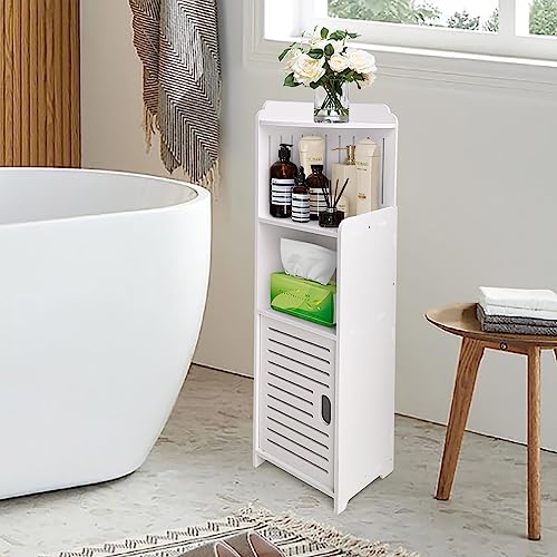 - Multi-functional Bathroom Storage Organizer :The bathroom storage cabinet with easy-to-match appearance color can match any home décor style.This vertical freestanding storage floor cabinet is suitable for the daily storage in bathroom, living room, kitchen, entryway or anywhere you want.Its perfect dimension makes it suits small places, even in the corner or counter space.