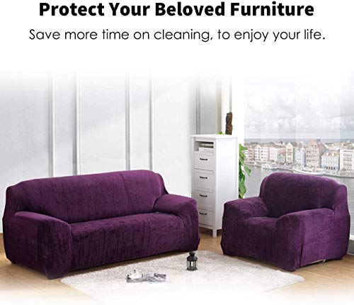 - HIGH QUALITY METERIAL: This premium sofa slipcover is crafted from velvet plush fabric, feature high stretchy and durability, extra soft, thick and comfortable, this sofa cover must dressed your furniture a new decent visual. High recommended for both leather and cloth sofa