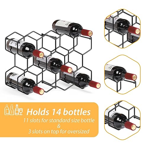 - CAN HOLD 14 BOTTLES! Has 11 wine bottle storage slots for the standard size bottles and 3 on top for oversized. Makes ideal wine rack inserts for cabinet storage, or use as a tabletop wine rack in a kitchen, basement or cellar