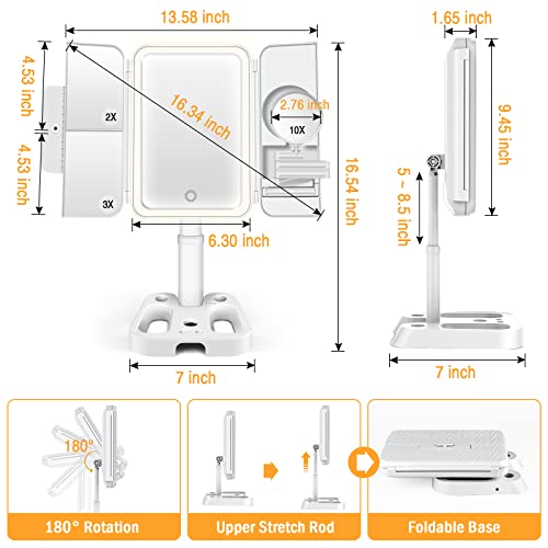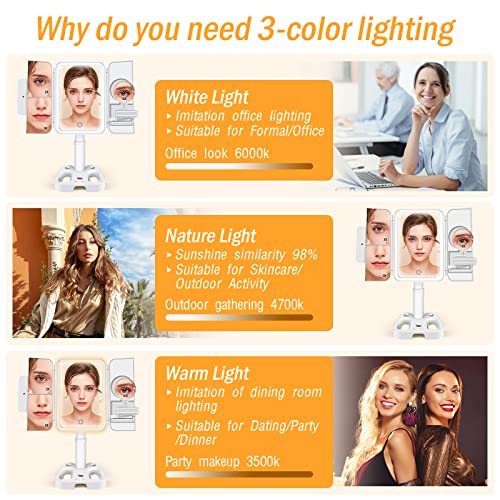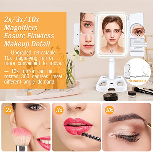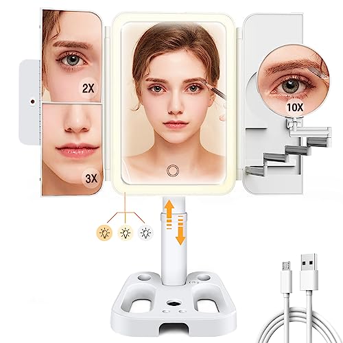Shansis Lighted Makeup Mirror, 2X/3X/10X Magnifying Mirror, Makeup Mirror Adjustable Height with Lights and Magnification, 3 Color Light Up Mirro