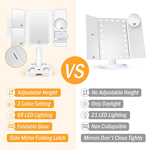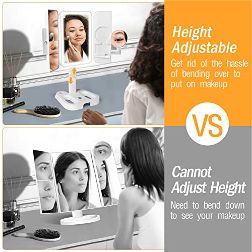 • Adjustable Height and Foldable: Our upgraded make up mirror with adjustable height(5-8.5 in adjustable), eliminating the need for bending or holding the mirror while applying makeup. The trifold makeup mirror can be opened or folded like a book, and the outside latch knob keeps it securely closed to protect against dust or damage during travel.