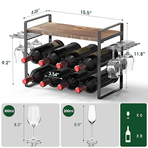 • 【Easy to Assemble and Use】The counter wine rack comes with screws for mounting wood top, just screw the parts together. It measures 15.7 inches (W) x 8.3 inches (D) x 12.2 inches (H) when assembled, making it ideal for small spaces or limited storage areas. It's perfect to place it on cabinet, bar and countertop.
