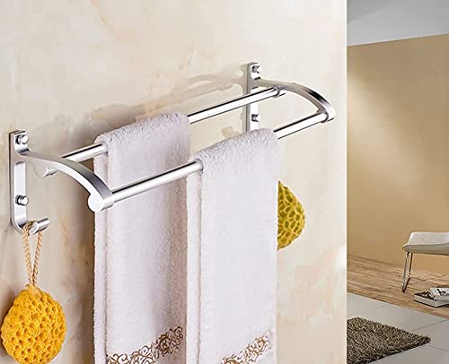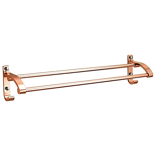 Home Furniture -Shelf,Towel Rack Double Towel Rail, 23.6In/60Cm Wall Mounted Towel Bar,Space Aluminum Towel Rack Holder with Double Hooks Gold