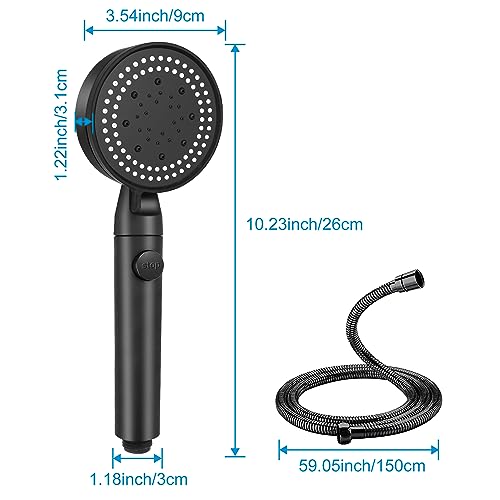 - 【Shower Head with 59 Inch Hose】Water saving shower heads with a 59-inch shower hose, hose made of stainless steel, and shower hose has strong brass connections, so you don't have to worry about it breaking. This versatile shower head set is suitable not only for adults but also for babies and pets.