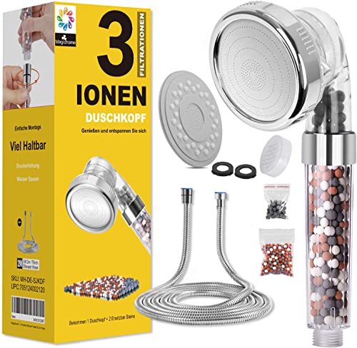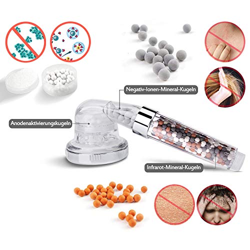 - 【 Upgraded 3-layer Filtration 】- This ionic shower head with Upgraded 3-layer filtration, can soften the hard water better. The mineral stones help to remove chlorine and flouride, toxins, heavy metals, bacteria, rust and odor from the shower water, enhance water purification, and maintain the pH balance of the water.