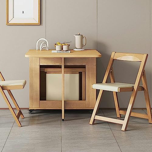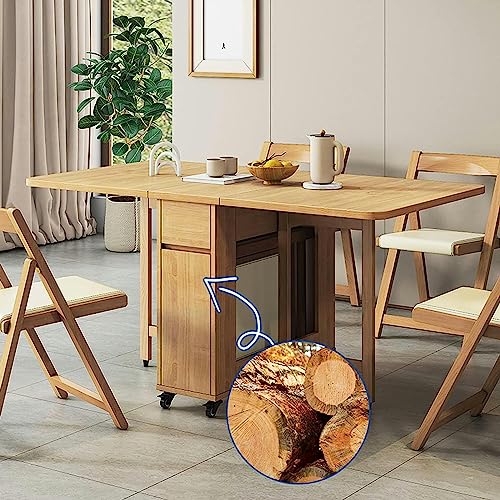 - 【Folding Dining Table】The solid wood table top, paint-free process design, the surface is waterproof, stain-proof, oil-proof, heat-resistant, scratch-resistant, rubberwood table leg and cabinet body, and has a strong and firm structure. Packing: 1* table and 6* dining chairs.