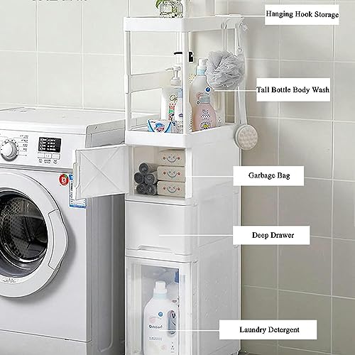 - [Multifunctional Use] Put towels and some other bathroom supplies, or put them in the kitchen, hang some rags, and classify them more clearly. Daily use layer, paper towel layer, trash layer, super storage, space saving compact design. You can store towels, taller bottles of shampoo and wash supplies. Small drawers can help you keep small toothpaste and toothbrush items Suitable for a variety of different scenes, whether it is a living room, bedroom or studio.