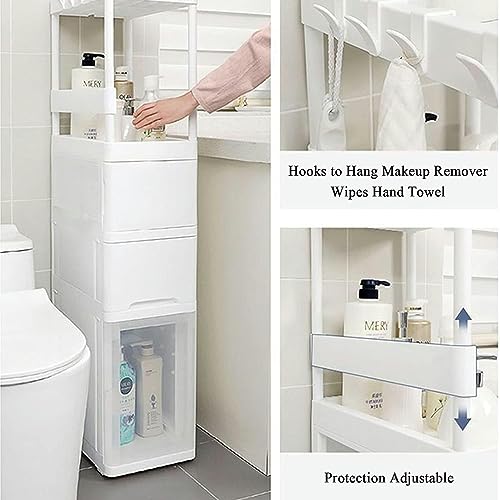 - [Suitable For Small Spaces] Our small bathroom storage fits anywhere of your house, can fit any tight spaces to exploit the tight space a small bathroom features. This sleek slim & space-saving design storage cabinet can not only use as a bathroom storage cabinet, also suitable for bedroom and living room organizer.