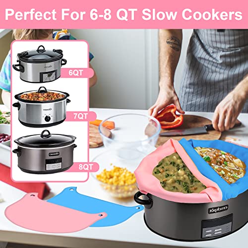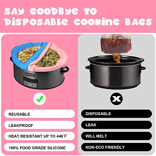 - 【What You Get】2 Pack large size reusable silicone slow cooker liners, each measured 11.8 x 18.5 inches to fit 3 to 8.5-quart oval & round pot slow cookers (1pc pink,1pc blue).