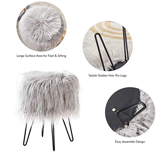 - BEAUTIFUL & FUNCTIONAL: add this elegant accent to your home with Mxfurhawa soft and cozy faux fur stool, completely made out of polyester faux fur. The ottoman can also be a comfortable extra seat or the perfect vanity chair.