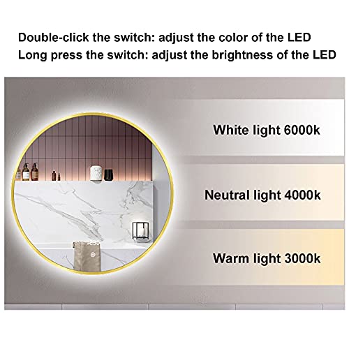 SkiPdr round Bathroom Mirror with Illuminated Led Dimmable and Aluminum Alloy Frame, Wall Mounted Makeup Shaving Size: Φ60/70/80Cm, Black FrameLe