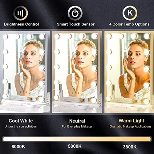 - [LED illuminated Mirror]</b>12 LED bulbs With 4 choices of color temperature ranging from warm light 3,800K to daylight 6,500K,simulate the lighting of various occasions,one mirror for different beauties