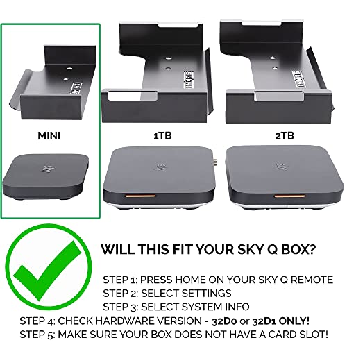 - WALL or TV - MOUNTS IN ANY POSITION, EVERY DIRECTION – SO EASY TO INSTALL, EVEN YOUR NEIGHBOR kids can affix this Sky Q Box Wall Mount. Simply decide where to mount it (WALL or TV Back VESA mount), Rest assured this sky mini box bracket has the INCLUDED FIXTURES & FITTINGS you'll need, follow the QUICK STEP BY STEP INSTRUCTIONS, then sit back and relax as you admire your handiwork and enjoy your favourite shows.
