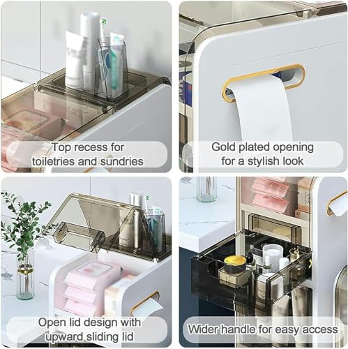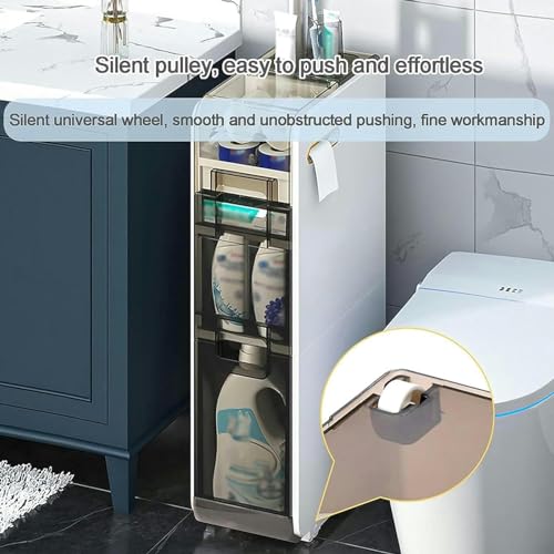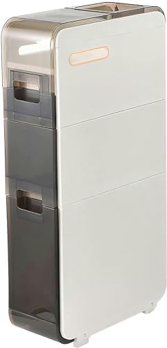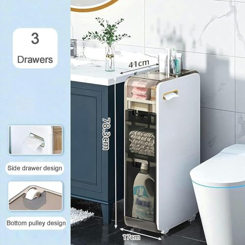 Slim Bathroom Storage Cabinet Free Standing Toilet Paper Holder with Slide Out Drawers and Casters