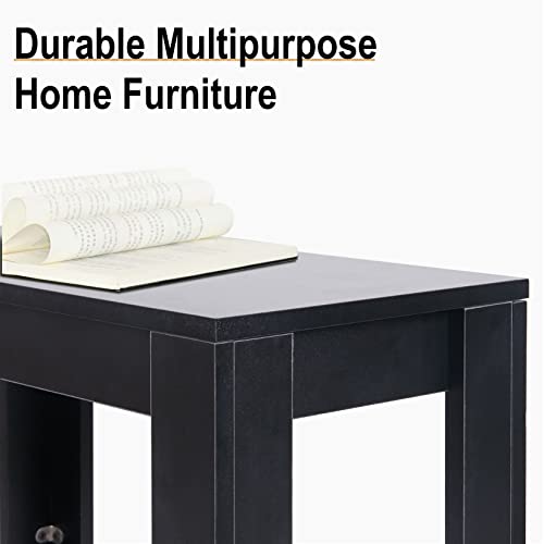 - 【Classic Simplicity End Table】Are you finding a narrow side table for your home to be placed in different rooms?Our classic side table with a storage shelf is a good choice for you.The multiple uses side table designed in simple style and black finished, can matches perfectly with kinds of decor styles and home furniture.Can be placed in living room, bedroom and study room to be an end table, sofa table, nightstand, phone table, lamp table, tea table and so on