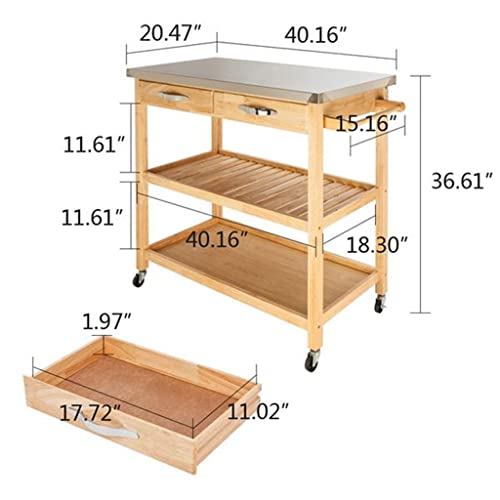- This cart is made of natural rubber wood, stainless steel countertops and metal handles, which make it particularly brilliant and stable.