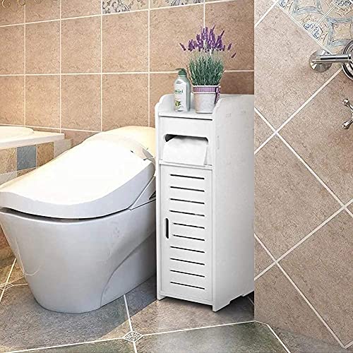 Home Bathroom Furniture Small Bathroom Cabinet Bathroom Storage Unit White Storage Tower Wooden Cabinet Organizer With Slatted Doors, Freestanding Bathroom Storage Moder
