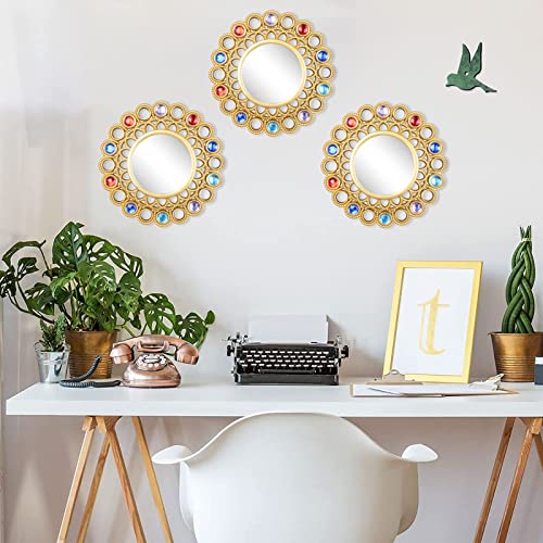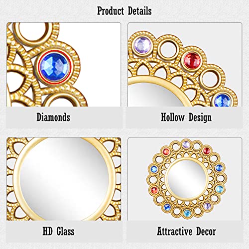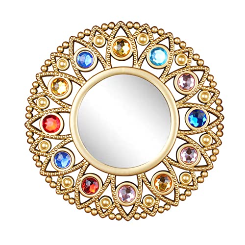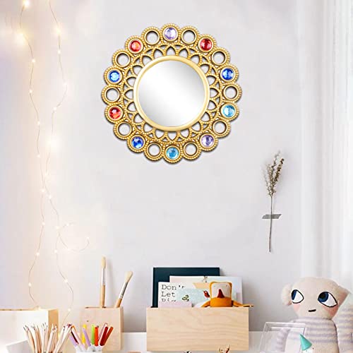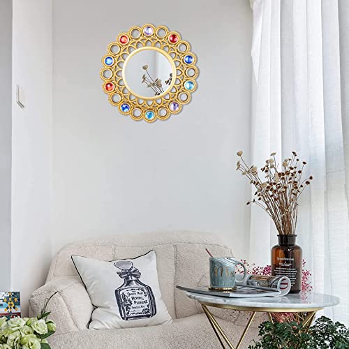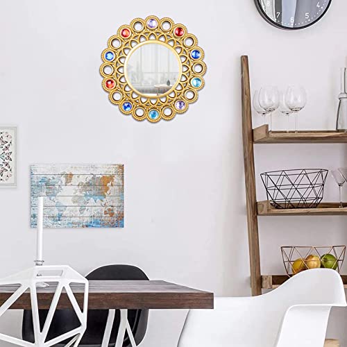 - Classic Wall Mirror: This modern mirror features an elegant plastic sunburst frame with an antique gold finish, acrylic rhinestones handmade inlaid, a round glass mirror with crystal clear reflection.