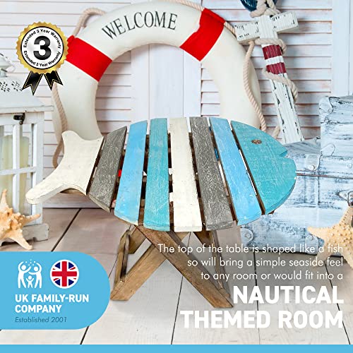 - The top of the table is shaped like a fish so will bring a simple SEASIDE FEEL to any room or would fit into a nautical themed room, great for using in the bathroom to keep your towels at a handy height.