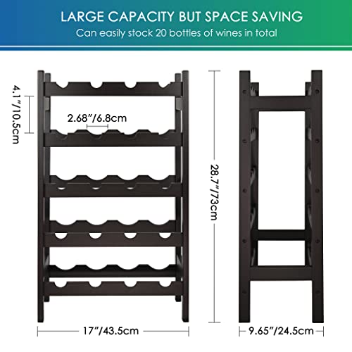 - ★ LARGE CAPACITY BUT SPACE SAVING: 4 bottles on each shelf, this nice 5-tier wood wine rack can easily stock 20 bottles of wines in total. Boasting a narrow vertical design, it is a wine rack for space efficient storage in your living room, kitchen, dining room, pantry or wine cellar etc.