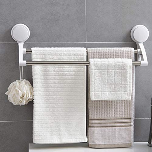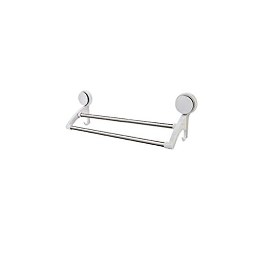 SMLJLQ Dual-layer Rail Shelf Suction Towel Rack Stainless Steel Wall Mount Bathroom Towel Holder Rack Bathroom Kitchen Accessories