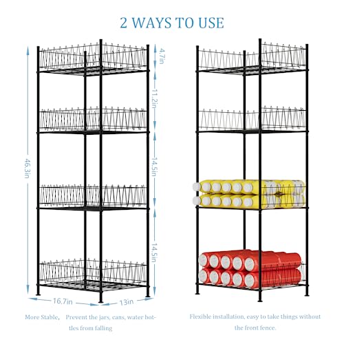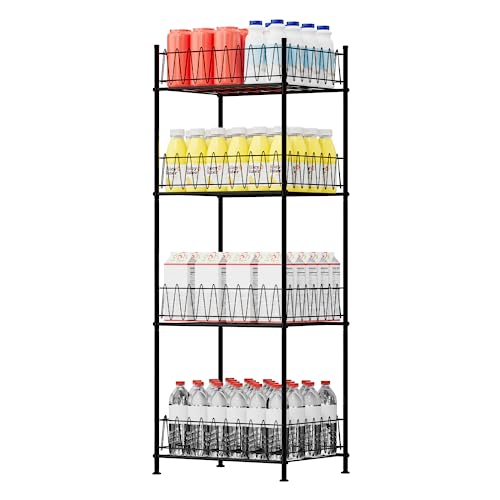 - 【Large Capacity Water Bottle Organizer】 With 4-tier of baskets and each layer is 14.5 inches in height, the water bottle storage rack can hold a variety of items such as soda cans, snacks, jars, fruit, beverage and more. Sturdy and rust-resistant, each tier can hold up to 30 pounds while ensuring that it won't bend or break under the weight of your items.