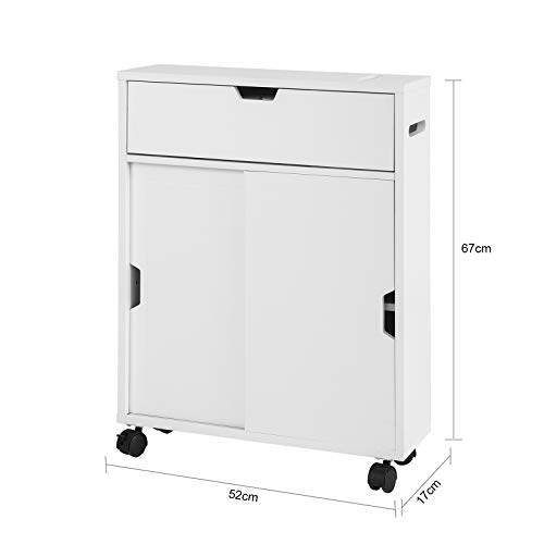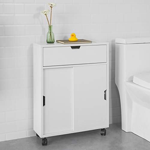- Space-saving free-standing bathroom toilet paper roll holder storage cabinet.