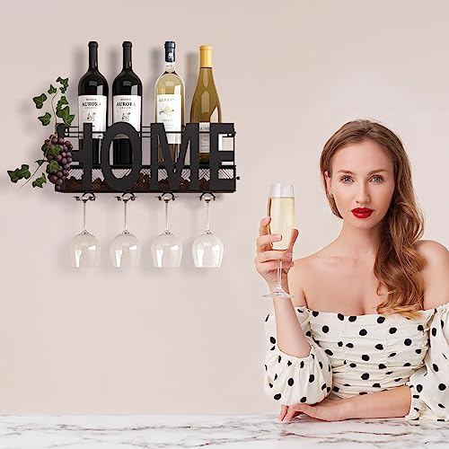 SODUKU Wall Mounted Metal Wine Rack 4 Long Stem Glass Holder & Wine Cork Storage Home