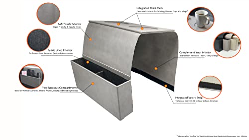 Sofa Arm Tray Table & Couch Remote Control Holder and Mobile Phone Organizer, Arm Rest Organizer, Arm Rest Table with Pockets - CEG-61 by Connect
