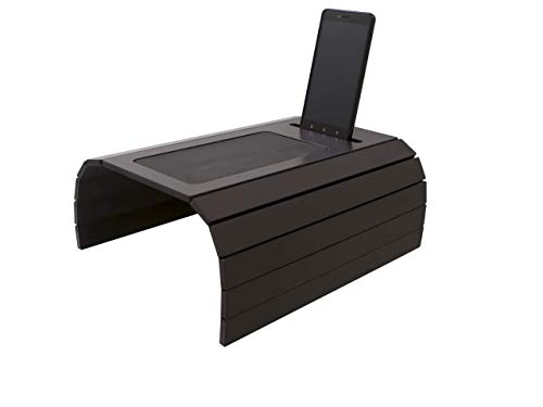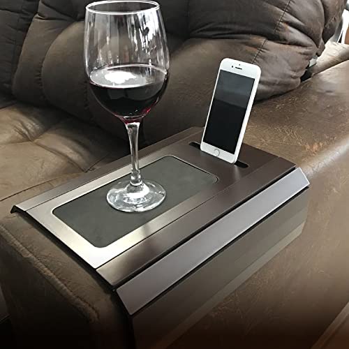 - Lounge with Ease - With our couch armrest tray, you can relax on your sofa while having everything you need within your reach. This sofa arm drink table has an anti-slip base and a cell phone holder for easy access to your snacks, gadgets, remote control, cell and more.