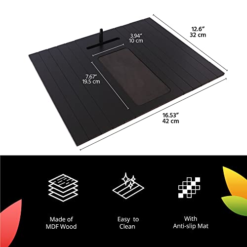 - More Space for Your Beverages - Besides holding your gadgets, our modern MDF couch arm shelf is spacious enough for your favorite hot or cold drinks. Excellent on square chair sofa arms, this sofa armrest tray measures 16.5 x 12.6 x 0.24 inches. (42 x 32 x 0.6 cm.)