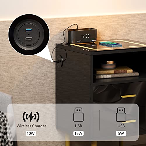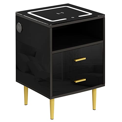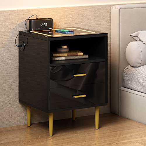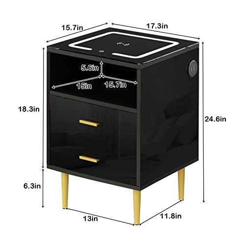 - [Space-saving design] - Size: 17.3x15.7x24.4Inch. The nightstand's compact size and sleek design make it perfect for small bedrooms or apartments. It provides a convenient surface for your bedside essentials, while also incorporating a charging station and lighting solution in one.