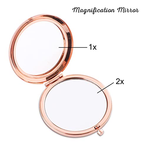 - [Double sided folding mirror]:Every woman wants to be beautiful. She uses this lovely rose gold mirror every day and it brings back fond memories with every use.gifts for sister, friend,daughter,This folding mirrors are best gift for birthday, graduation, Christmas valentine’s day, Anniversaries, and Thanksgiving. A very useful mirror for woman Surprise her turning. Show how much you love with the absolute best gift to express how much you love her , she will like it.