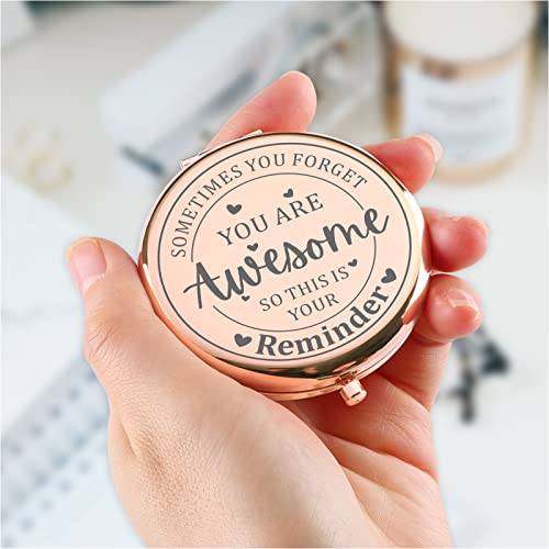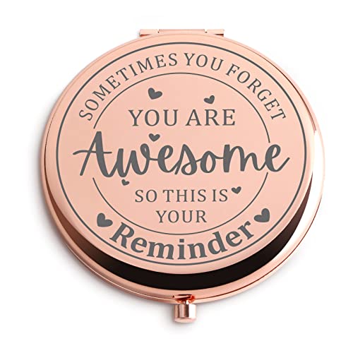 - [Inspirational gift for woman]: 1 x Gorgeous rose gold compact mirror, engraved with the words "sometimes you forget you're awesome so this is your reminder".Our Amazing Things inspirational mirror for will provide you with a daily dose of encouragement! It's nice to remember you can do anything you set your mind to.You're the most awesome woman! Mother, aunt, colleague, girlfriend, grandmother, stepmother, godmother, teacher, nurse, classmate, sister, friend, wife, Christmas, Valentine's Day, Mother's Day graduation gift.It will bring back happy memories when she uses it every time.