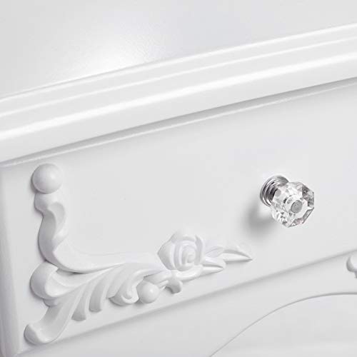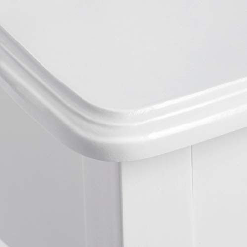- Everything all around in matt white super painted; table and chair legs equipped with non-slip floor glides; for safety, the dressing table can be anchored to the wall with the included tilt protection