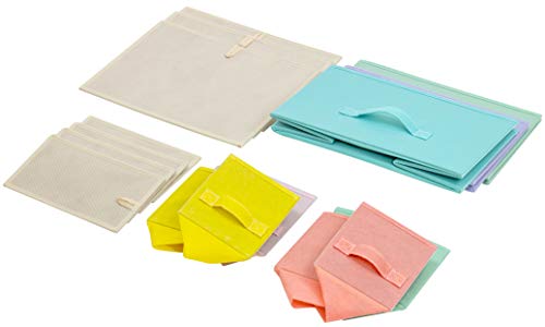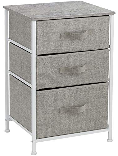 - KID FRIENDLY DESIGN - Sleek wide storage - Made with strong steel frame and durable MDF wood top with smooth white finish - Drawers made of breathable, non-woven fabric - Pastel colors in teal, yellow, peach, pink, aqua, purple - Wipe clean - Minimal assembly required - Hardware and instructions INCLUDED - Measures approximately 25" L x 11.87" W x 28.75" H