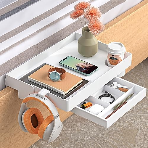 - SPACELEAD Bedside Shelf for Bed – College Dorm Room Clip On Nightstand with Cup Holder & Cord Holder&Drawer – Bunk Bed Shelf for Organizer Top for Bedroom (Black,Plastic)