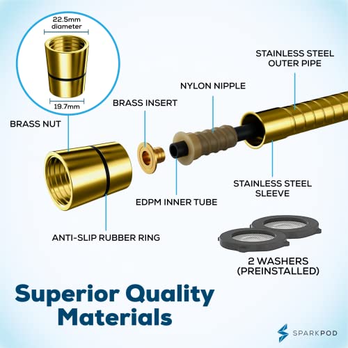 - SOLID, LIGHTWEIGHT & FLEXIBLE BUILD: Replace your rusty or stiff hose with our shower hose and pair it with SparkPod's shower bracket & shower arm in matching finish to ensure that your handheld showerhead stays put and maintains water pressure.