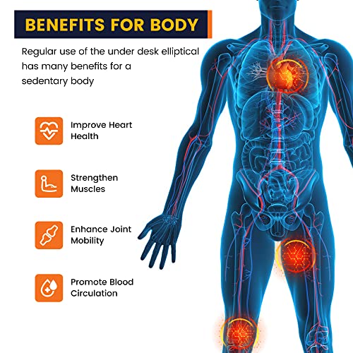 - 【SIT DOWN AND CYCLE!】The compact & portable design makes it possible to exercise anywhere, with a noise level <25 DB during use, don't have to worry about disturbing family rest or colleagues' work. Start fighting against your sedentary lifestyle with our under desk elliptical!